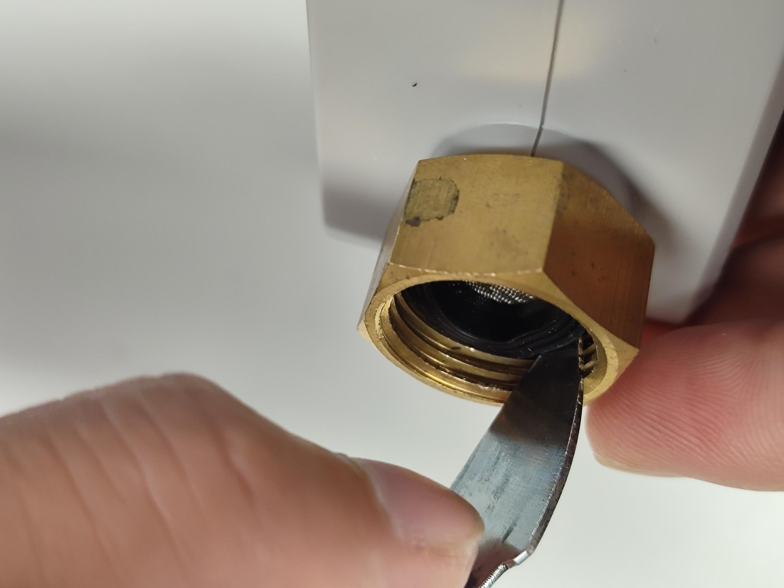 *For the old version of the product, the filter screen is installed in the opposite direction. In this case, insert a thin metal piece between the silicone and the nut, pinch the silicone with your fingers, and remove the filter screen. When reassembling, install it in the opposite direction to make future cleaning easier.